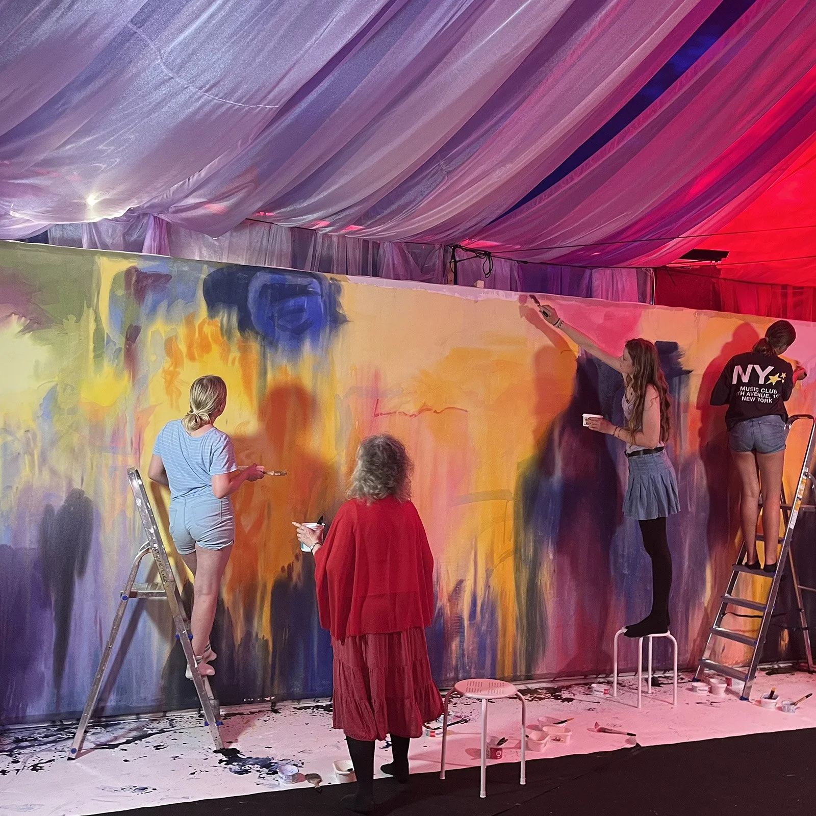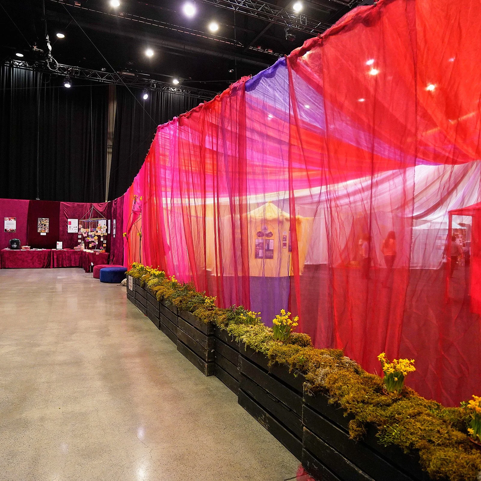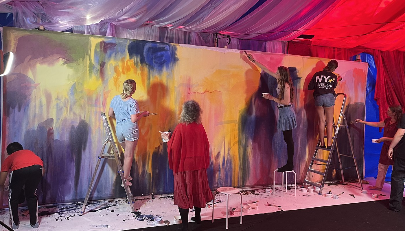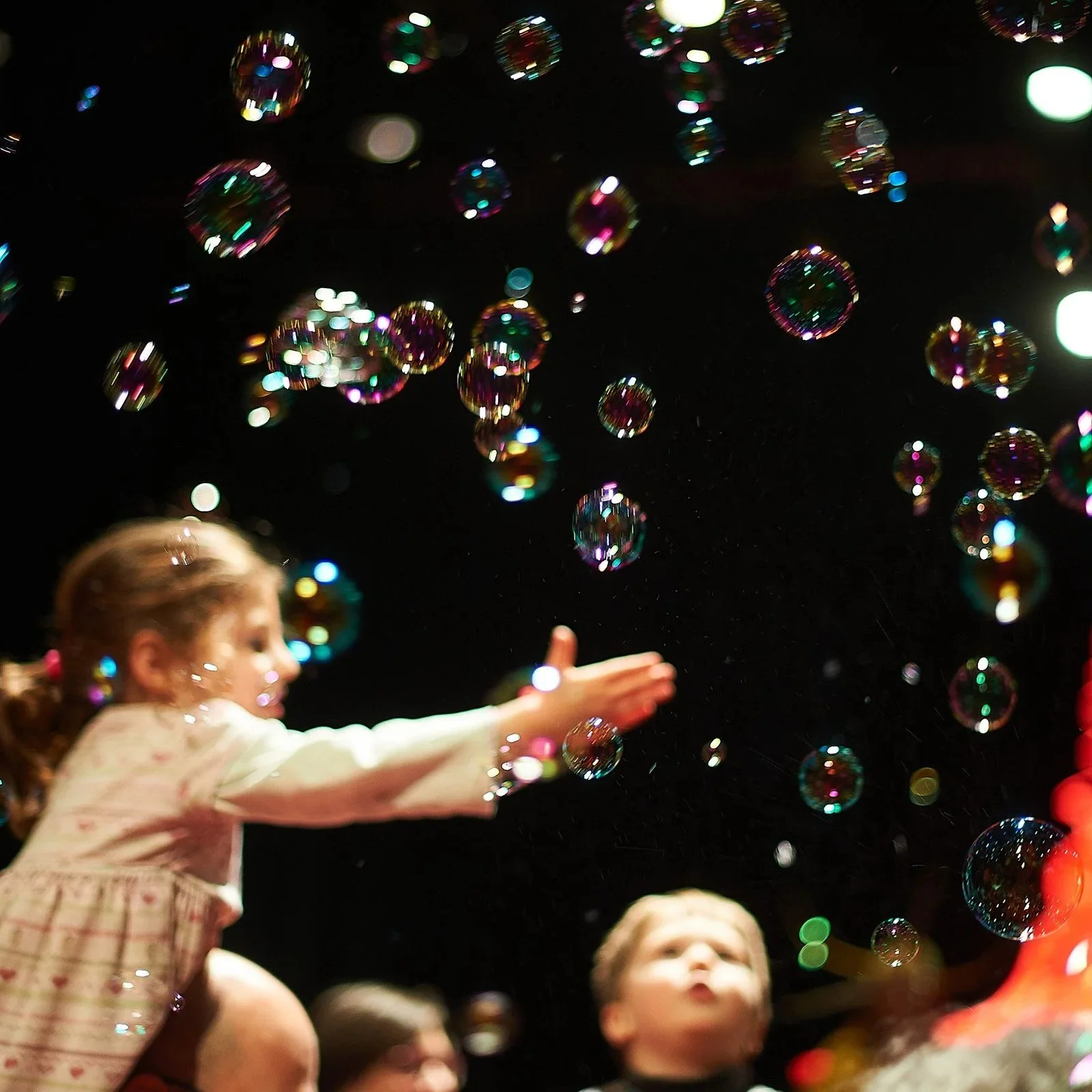 –för barn, vuxna, mor- och farföräldrar, vänner och alla som vill leka tillsammans. Under ett himmelshögt tak som skimrar i regnbågens färger möts små hus, hemliga skrymslen, slöjskogar och en skattkammare fylld av teaterkläder. Här väcks fantasin till liv genom lek, dans, sång och rörelse.